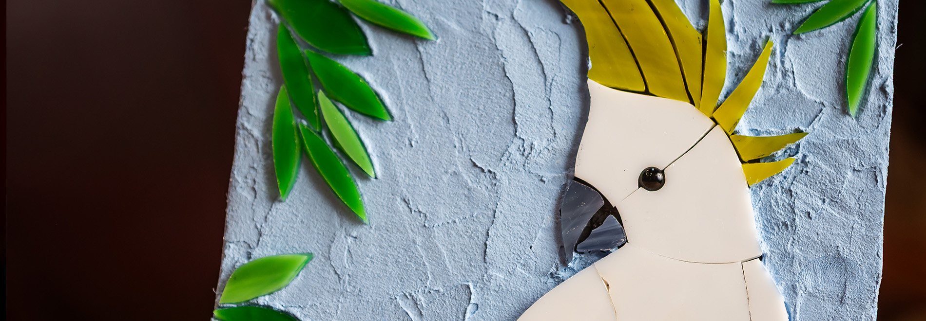 Create your own Sulphur-Crested Cockatoo from start to finish on a lightweight board suitable for indoors or outdoors. Learn about pattern design and transfer, substrate preparation, glass cutting and grinding, use of wheeled nippers, adhesives, and finishing with a tinted cement-based background.