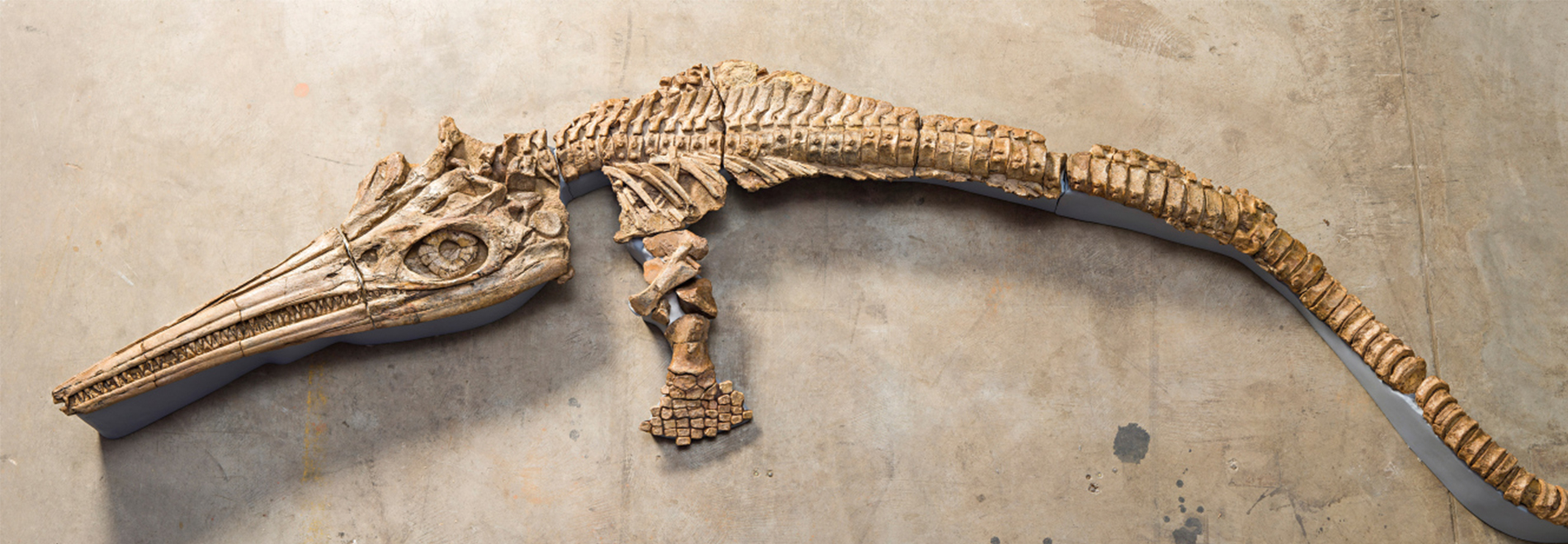 Polycotylids are a group of plesiosaurs with long, narrow jaws. A specimen discovered by graziers near the town of Richmond in north Queensland is the most complete plesiosaur from Australia, and one of the most complete polycotylids anywhere in the world. This species is yet to receive a formal scientific name. The ‘Richmond polycotylid’ is currently on loan for display at the Kronosaurus Korner museum in Richmond.