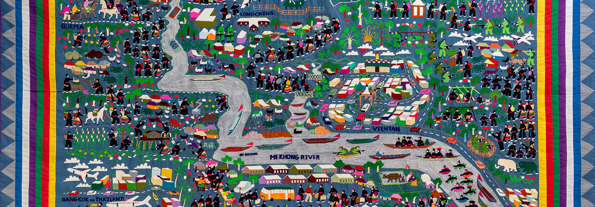 2020 I Do: Weddings Wedding Stories from Queensland – Exhibited wedding gowns and objects including a H31504 Hmong story cloth; H30008 Chinese wedding gown; H1721 Glory box; and H31218 Hmong wedding ensemble, held in the World Cultures Collection.