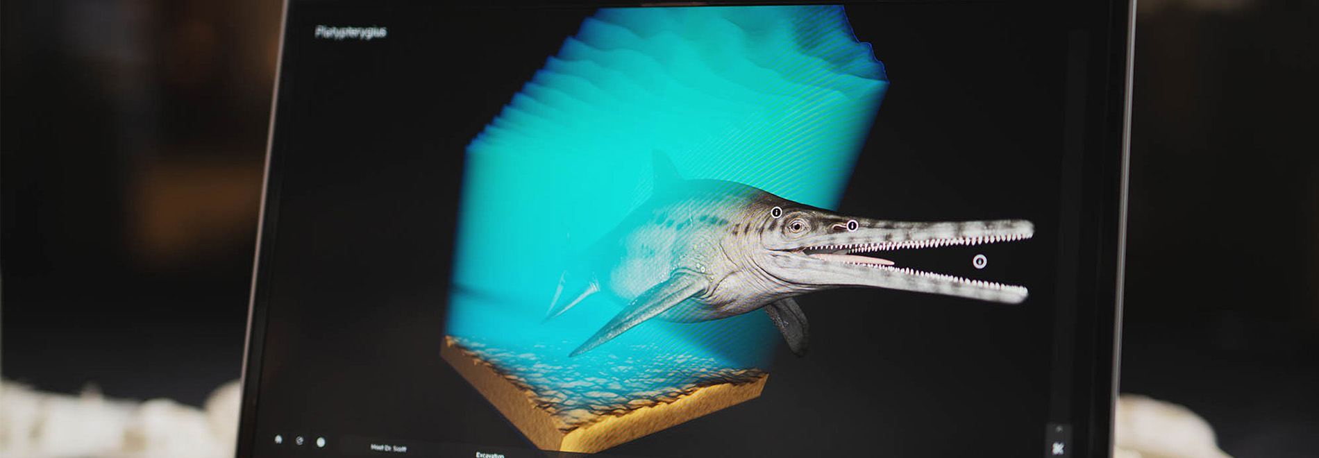 Project DIG has partnered with Swedish based 3D-visualisation software company Interspectral to transform our collections and research into amazing digital exhibitions. Inside Explorer software takes real scientific datasets and composites them into a story about the specimen and the environment around it. Visitors can interact with our collections and research through touch screens and touch tables providing an engaging learning experience for people of all ages.