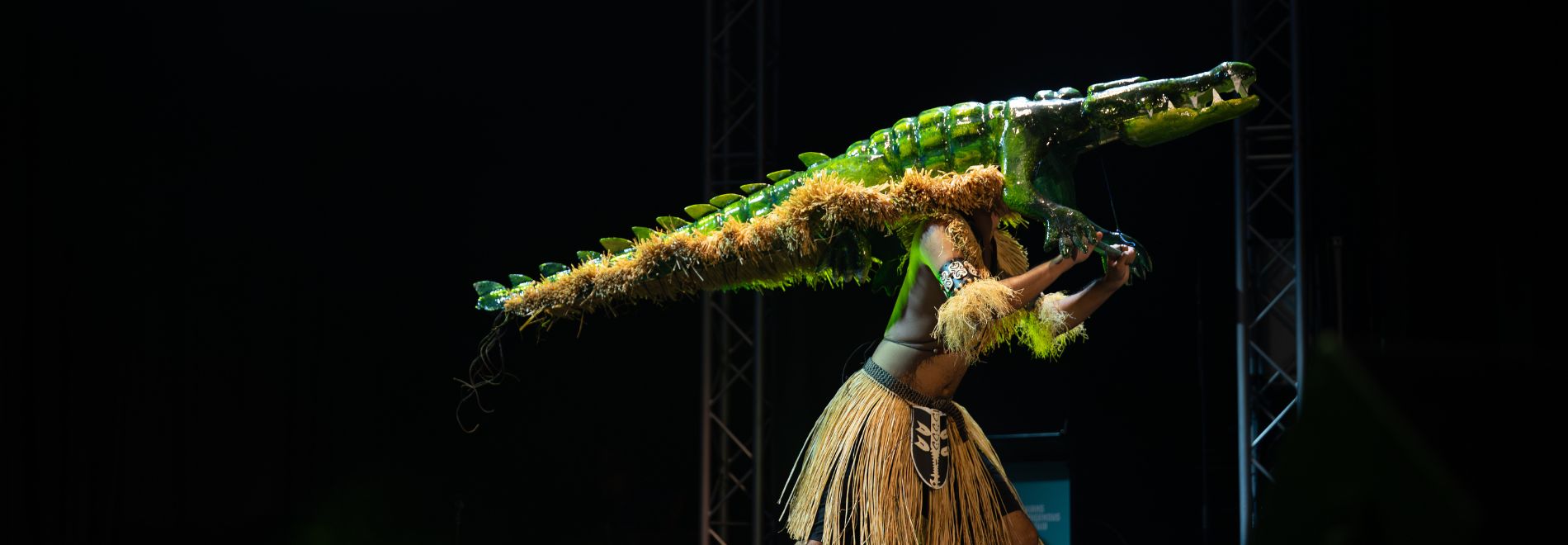 Throughout the dance, Alick’s sons wear distinctive headdresses that demonstrate their deep connection to the Koedal (crocodile).