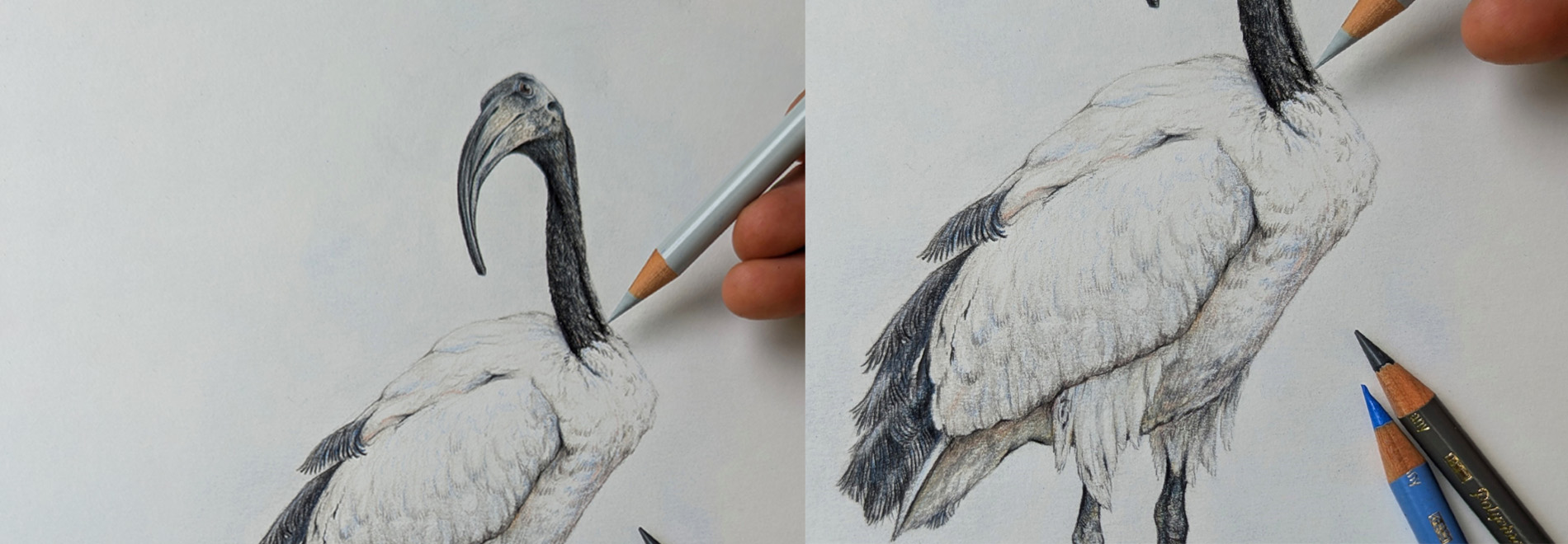 During this special half-day workshop presented by NatureArt Lab's professional tutor Zoe Lawrence, you will have an opportunity to understand and appreciate the character and anatomy of the Australian white ibis, a close relative of the African sacred ibis.