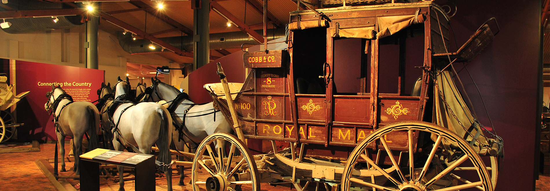 Queensland Museum Cobb+Co houses the National Carriage Collection - Australia's finest collection of more than 50 horse-drawn vehicles from coaches, buggies and wagons to carriages, sulkies and carts.