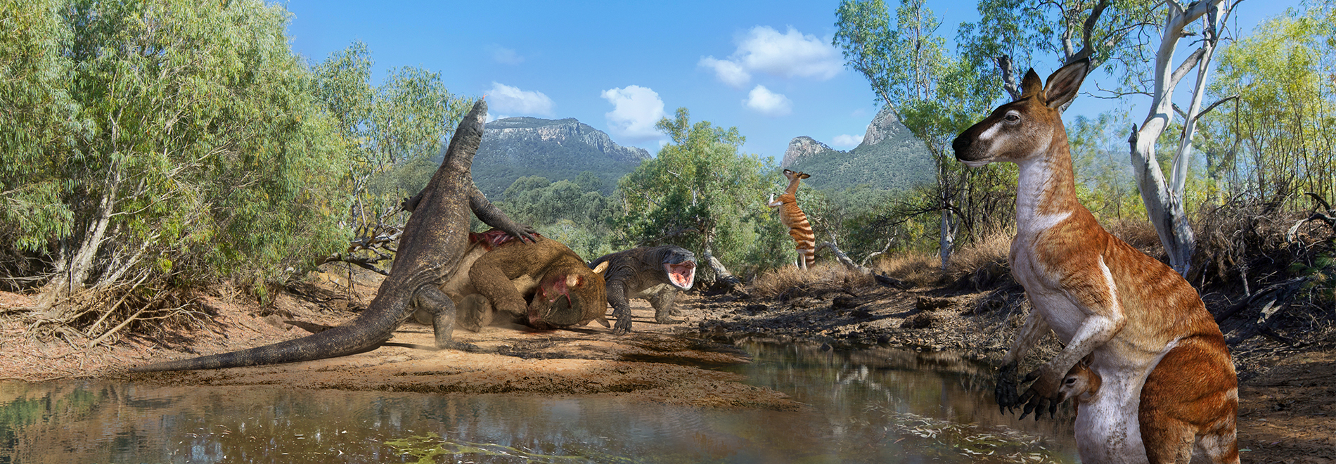 During the Pleistocene Australia's tropical north was dominated by mega-reptiles, including giant crocodiles, lizards, snakes and tortoises. Most of these species were the apex predators on land and in the freshwater rivers, lakes and billabongs. They even dominated central Australia's Lake Eyre when it was permanently full of water.