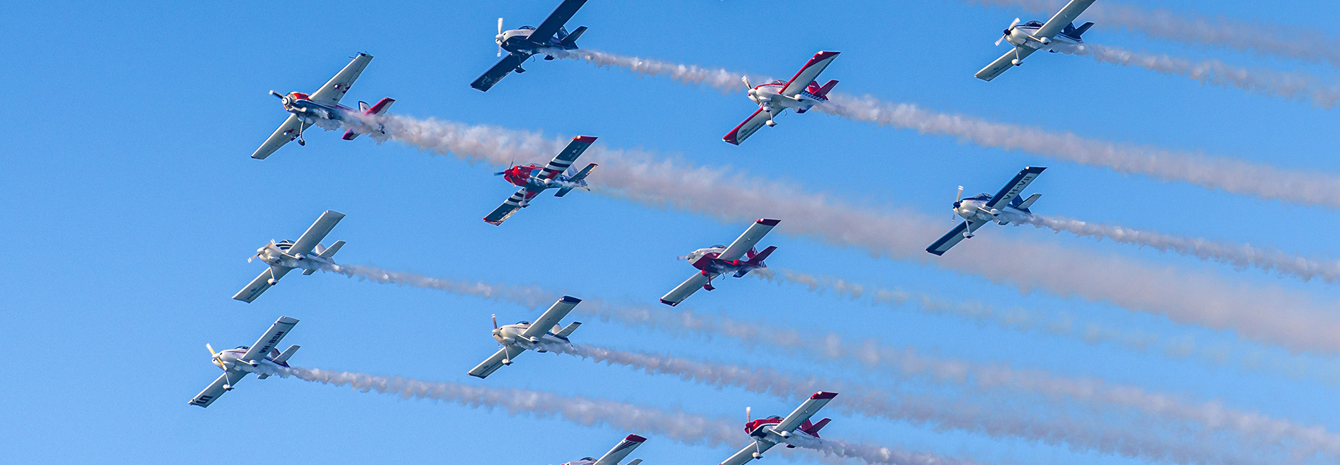 Intense aerobatic manoeuvres combining crowd-favourites and air racing simulations.